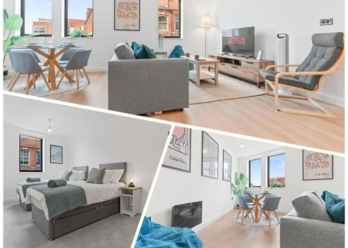Das 59 m² große 2 Bed Modern Contemporary Apartment In City Centre Birmingham liegt in einer Entfernung von 20 Minuten zu Fuß vom Bullring und bietet Parkplätze für alle, die mit dem Auto anreisen. Diese Apartments liegt im Stadtteil Jewellery von Birmingham und bietet Zugang zum Jewellery Quarter (ist circa 600 Meter von der Unterkunft entfernt).